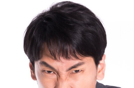 - 眉間にシワ
