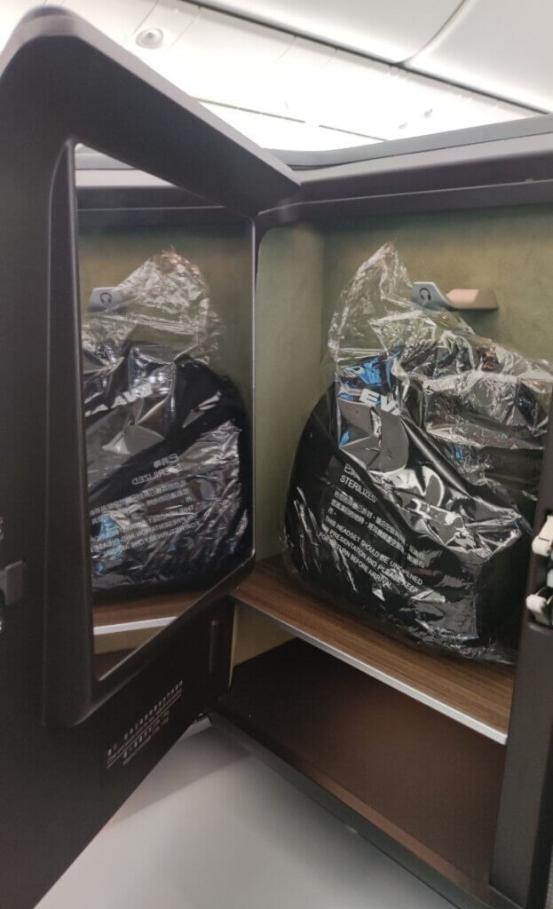 ドアはついていませんが、ほとんどANAの「The Room」と同じ感じなのではないでしょうか?今回の世界一周で乗りたかった「The Room」。空席がなくて夢がかなわなかったので、これは「The room」と同じ!と思い込んでフライトを満喫しました。