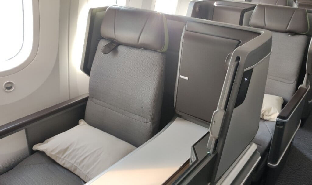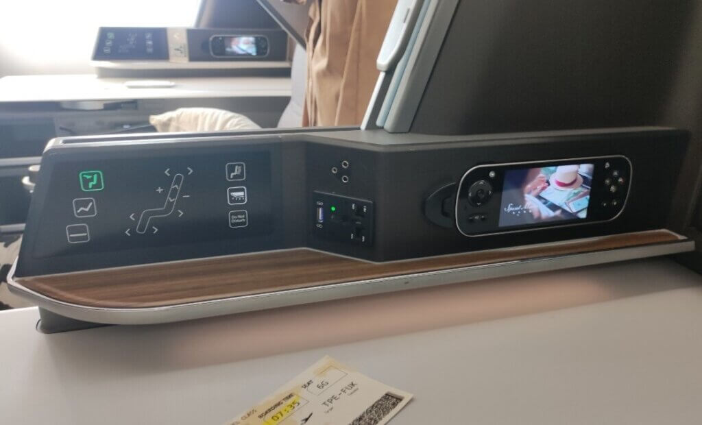 フルフラットになる短距離フライトには贅沢な機材でした。