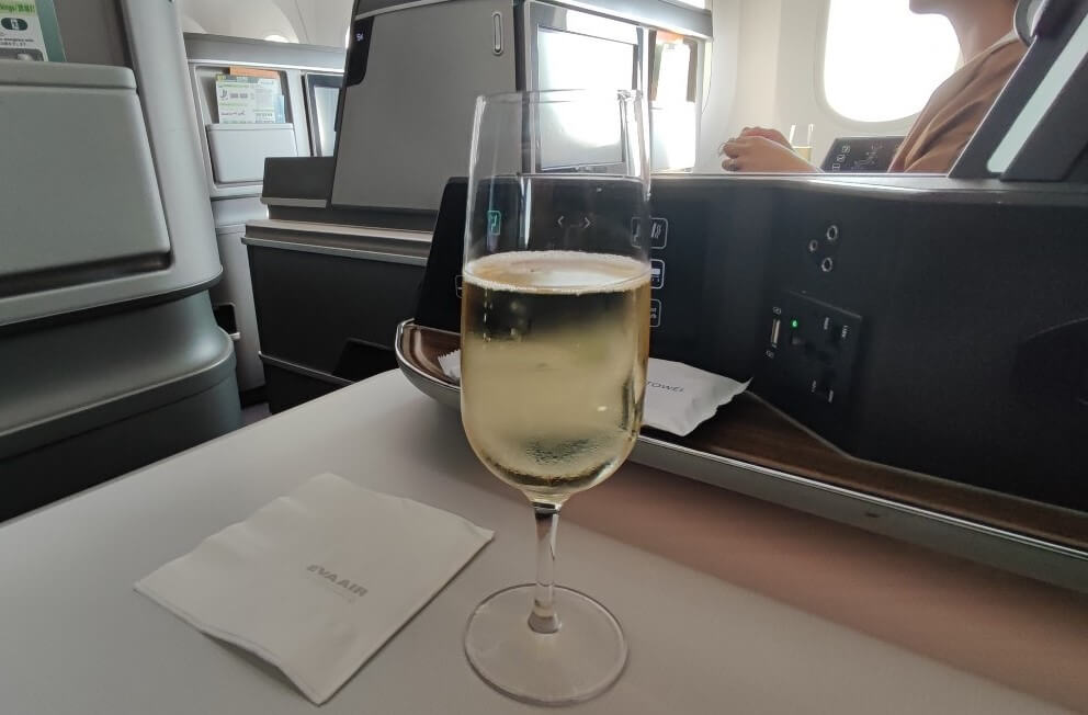 搭乗後まずは、ウェルカムドリンクにシャンパンをいただきました。